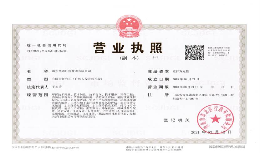 山東博通環(huán)保技術(shù)有限公司是一家專業(yè)從事環(huán)保、安全、消防的多元化技術(shù)服務公司,公司致力于打造專業(yè)的技術(shù)服務團隊,立足青島,輻射山東,服務范圍涵蓋:環(huán)保技術(shù)開發(fā)、技術(shù)轉(zhuǎn)讓、技術(shù)咨詢、技術(shù)服務;環(huán)保工程;消防技術(shù)咨詢;消防設施檢測;消防安全評估;消防設施維護保養(yǎng);環(huán)境應急預案咨詢;安全生產(chǎn)標準化咨詢;場地環(huán)境調(diào)查報告編制,土壤與地下水環(huán)境調(diào)查及風險評估,水土保持方案編制,水土保持過程監(jiān)測,水土保持驗收工程,排污許可申報代理,清潔生產(chǎn)審核;批發(fā)零售:環(huán)保設備、機械設備與配件、消防設備、儀器儀表、五金建材、化學試劑(不含危險品)。公司具有“建設手續(xù)一站式辦理,安環(huán)問題一條龍解決”的獨特優(yōu)勢,可為客戶提供高效、優(yōu)質(zhì)的安全、環(huán)保、消防管家技術(shù)服務。